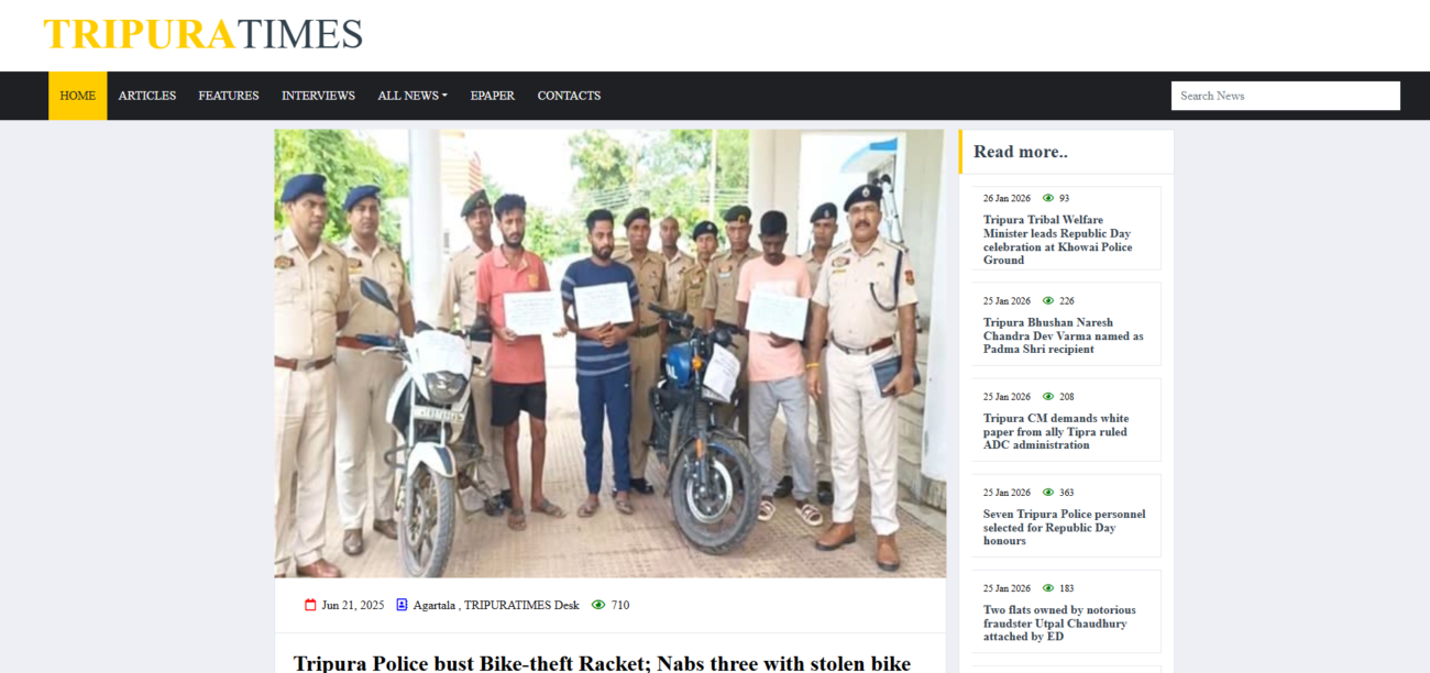 26 Jan Blog Tripura Police Bust Bike-Theft Racket — A Reminder to Secure Your Ride Posted by Bada Think January 26, 2026 0 Tripura Police recently cracked down on an organized bike-theft network, arresting three suspects and recovering a stole... Continue reading